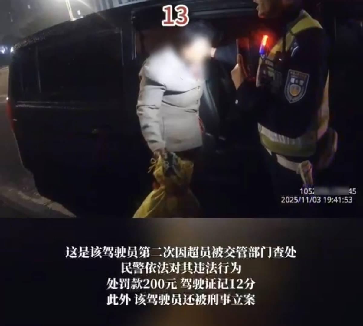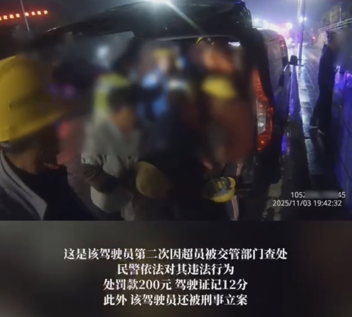 最终,民警依法对张某斌驾驶校车、公路客运汽车、旅游客运汽车以外的其他载客汽车载人超过核定人数100%以上的违法行为处以罚款200元,驾驶证记12分;同时因从事旅客运输严重超过额定乘员载客违法行为构成危险驾驶罪,于2025年11月12日被公安机关立案侦查,且该车无道路运输许可证,涉嫌非法营运,已移交交通运输部门进一步处理。
