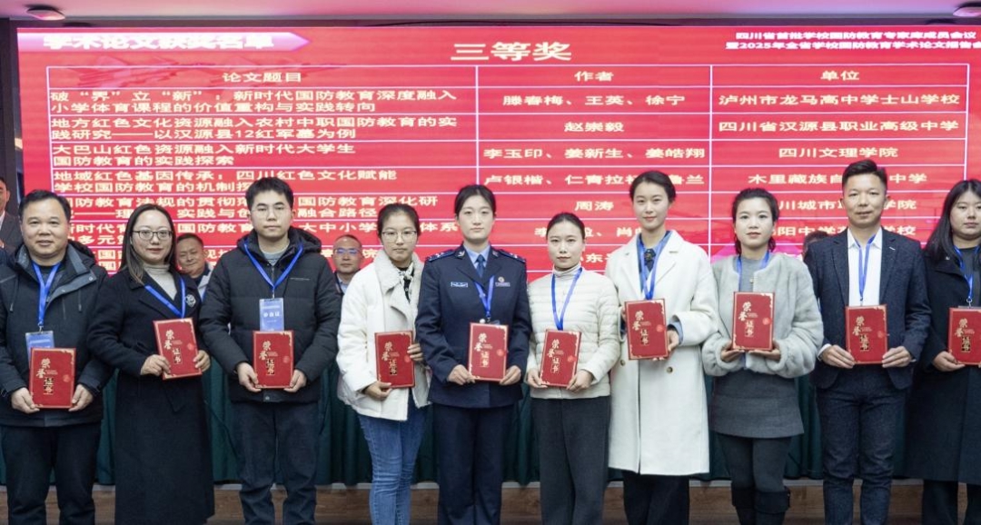 近日,2025年四川省学校国防教育学术研讨会在四川邮电职业技术学院举办,揭晓论文评选结果。其中,四川司法警官职业学院程雨晴、吴霞、张煜组成教师团队撰写的《新时代学生军事训练组训模式研究——以S学院“三元协同”模式为例》学术论文荣获省级三等奖。