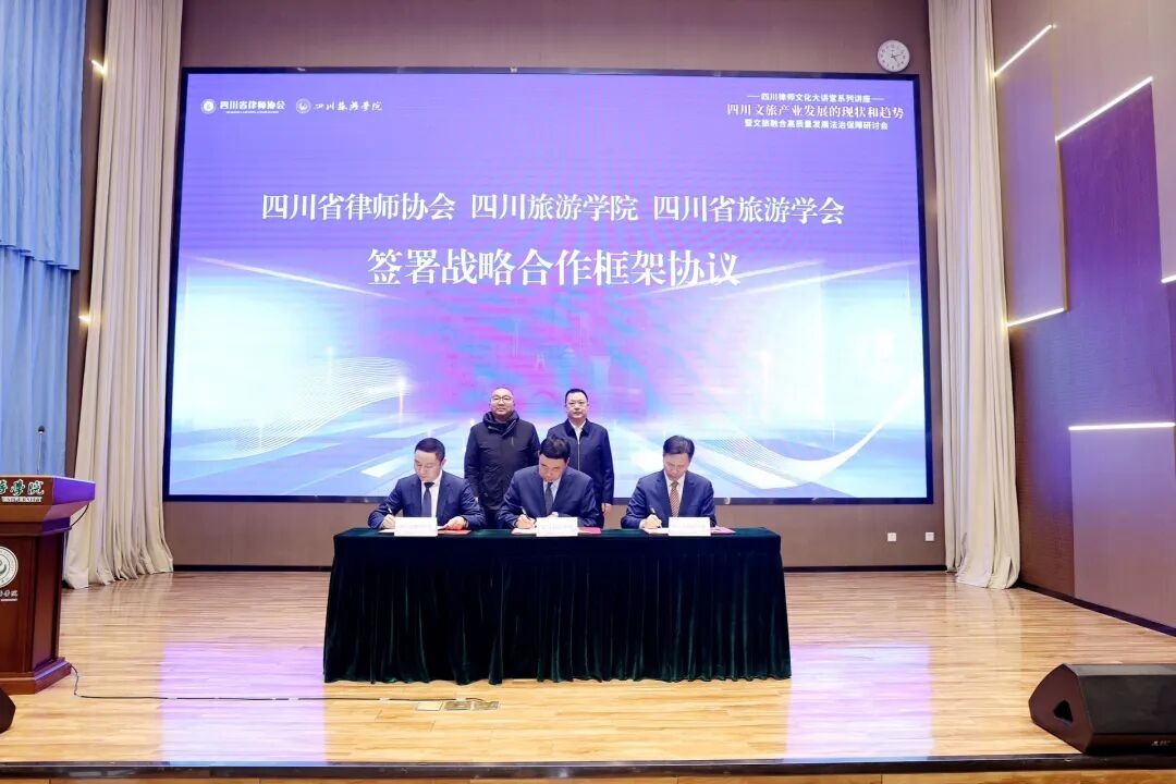 开幕式上,四川省律师协会、四川旅游学院、四川省旅游学会共同签署了《战略合作框架协议》。