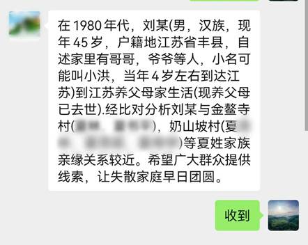 发帖人刘某讲述,自己4岁左右便在丰县与养父母生活,如今养父母已去世多年,得知身世真相的他,迫切希望找到四川的亲生父母和亲人。