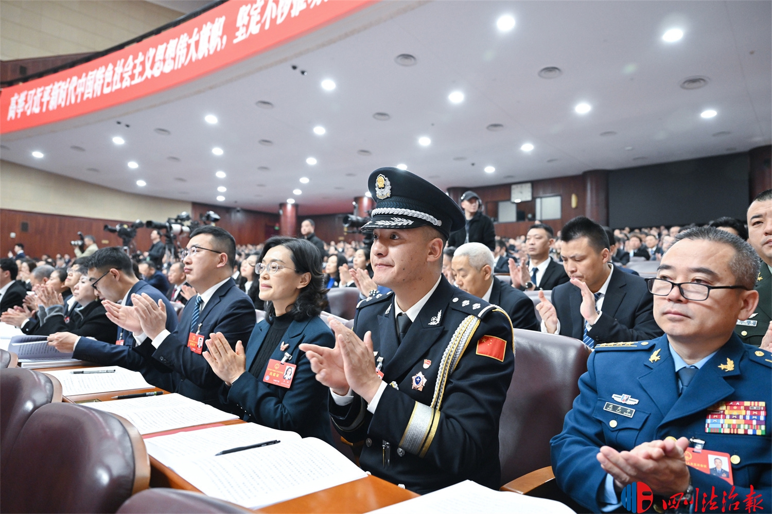 随着四川省第十四届人民代表大会第五次会议2月3日在成都开幕,来自我省政法系统的省人大代表与其他各条战线、各行各业的省人大代表一起,肩负全省人民重托出席大会,认真履行宪法和法律赋予的神圣职责,积极建言献策,为建设更高水平的平安四川添砖加瓦。