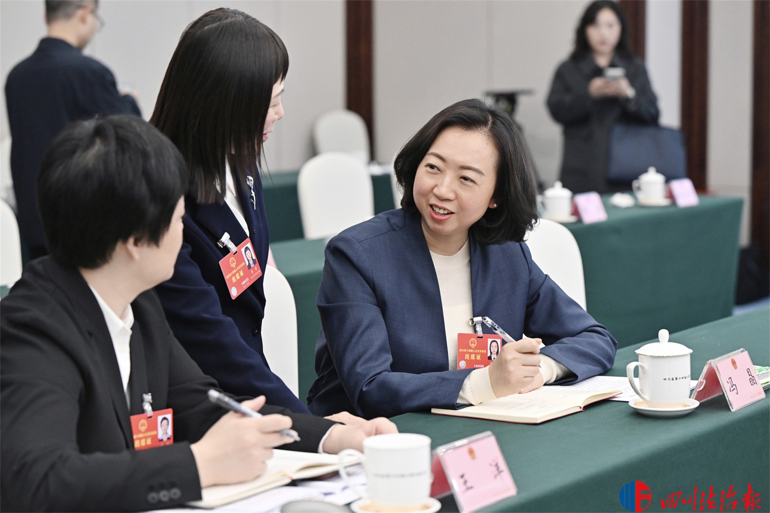 小组会后,罗婵代表与参会代表讨论