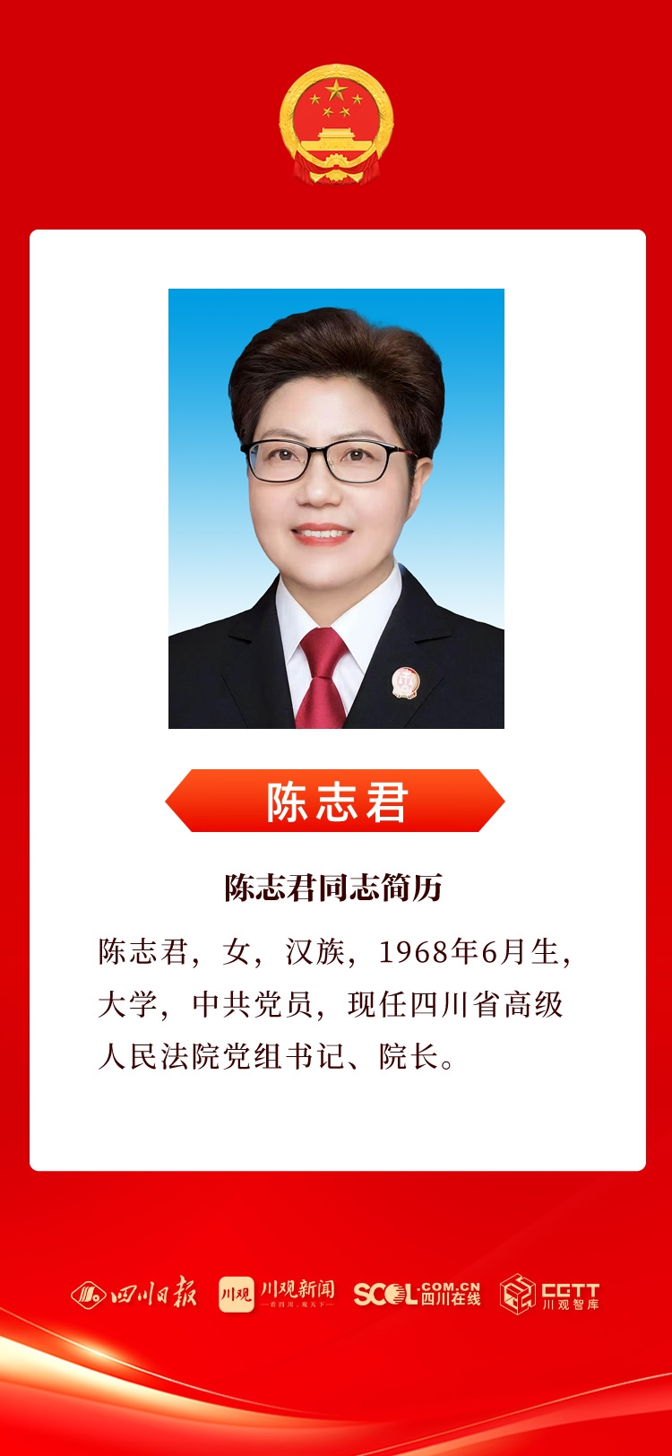2月7日下午举行的四川省第十四届人民代表大会第五次会议第三次全体会议,选举陈志君为四川省高级人民法院院长。