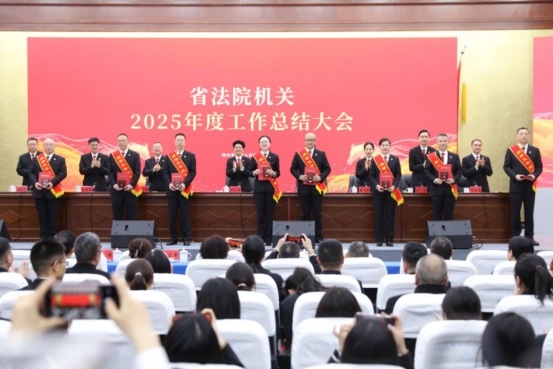 会议指出,2025年,省法院坚持以习近平新时代中国特色社会主义思想为指导,坚定践行习近平法治思想,坚决贯彻省委、最高法院决策部署,严格公正司法,持续提质增效,各项工作取得新进展。全省法院审判质量、效率、效果位居全国前列,59个集体、73名个人获省级以上表彰表扬。会议充分肯定过去一年全院在全面依法履职、服务中心大局、践行人民至上、深化协同共治、锻造过硬队伍等方面取得的成绩,高度认可每名干警的辛勤付出。
