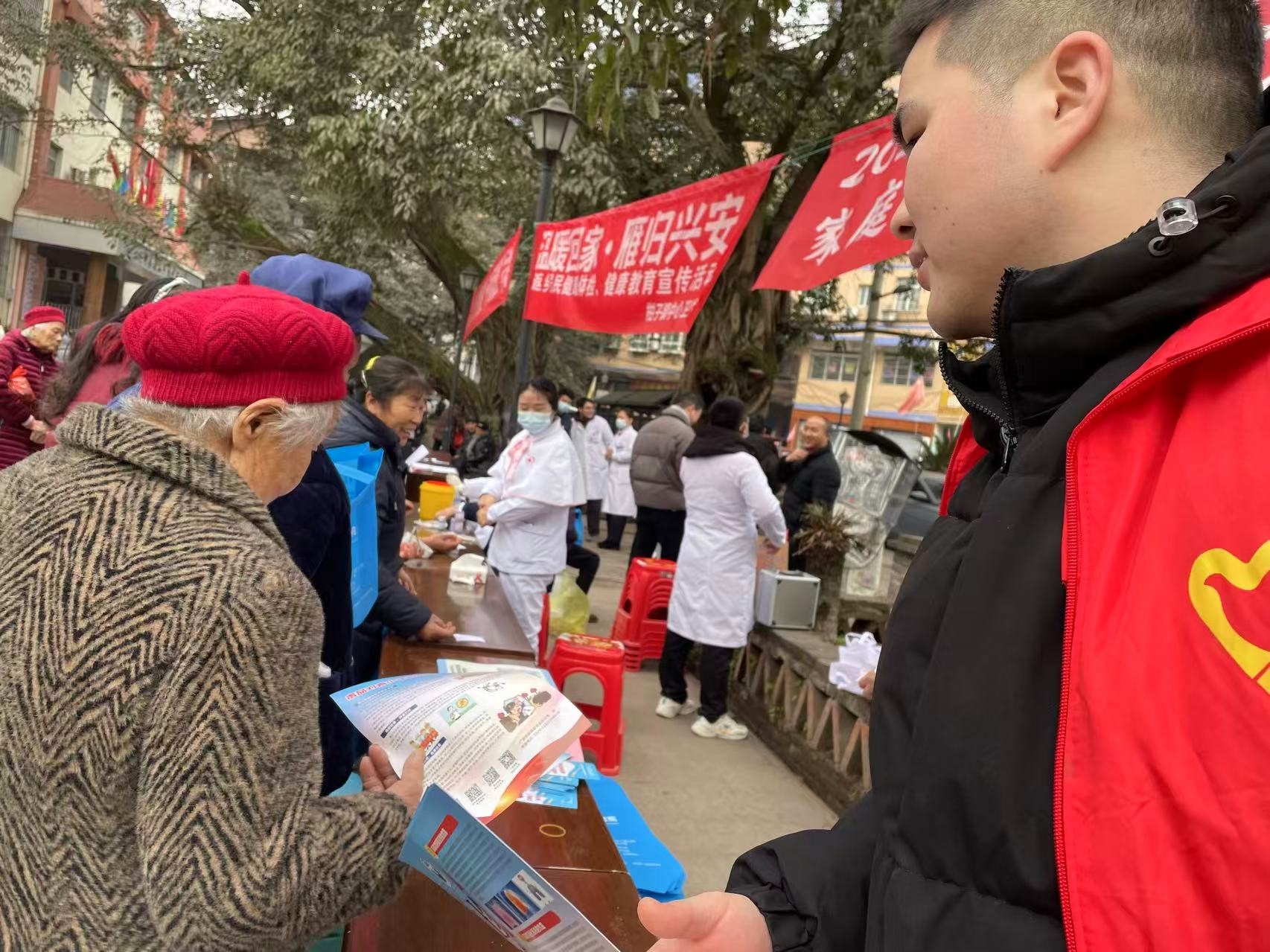 在禁毒宣传现场,社区工作人员联合柑子镇中心卫生院医护人员,重点面向返乡务工人员、青少年群体,用真实案例讲解传统毒品与新型毒品的危害。