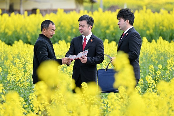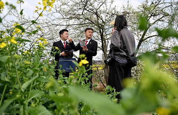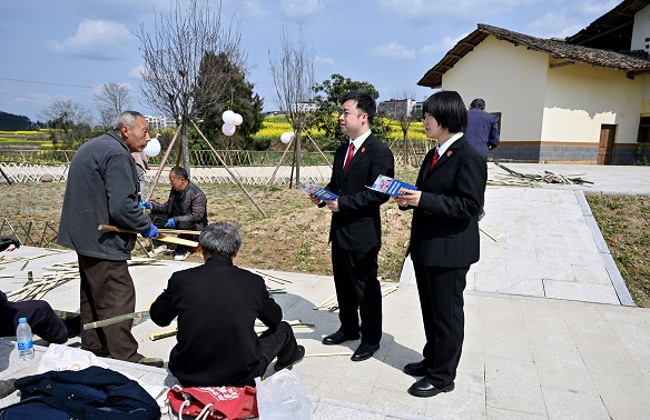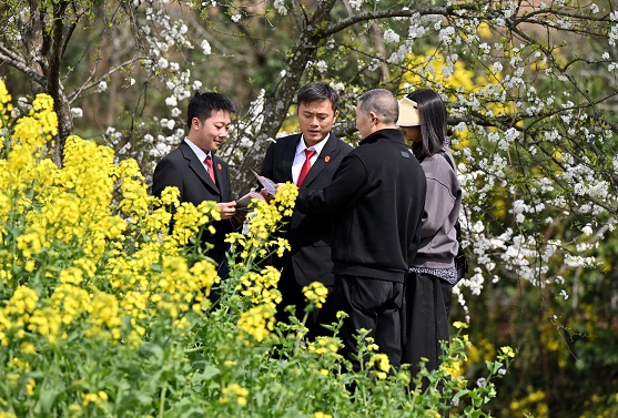 活动现场,干警们穿梭在农田与赏花区域,一边与正在劳作的村民亲切交流,细致讲解《中华人民共和国民法典》《中华人民共和国农村土地承包法》《中华人民共和国种子法》等法律法规,围绕土地流转、农资购买、劳务纠纷、合同履行等与春耕生产密切相关的问题答疑解惑,提醒农户防范坑农害农风险,依法维护自身权益。
