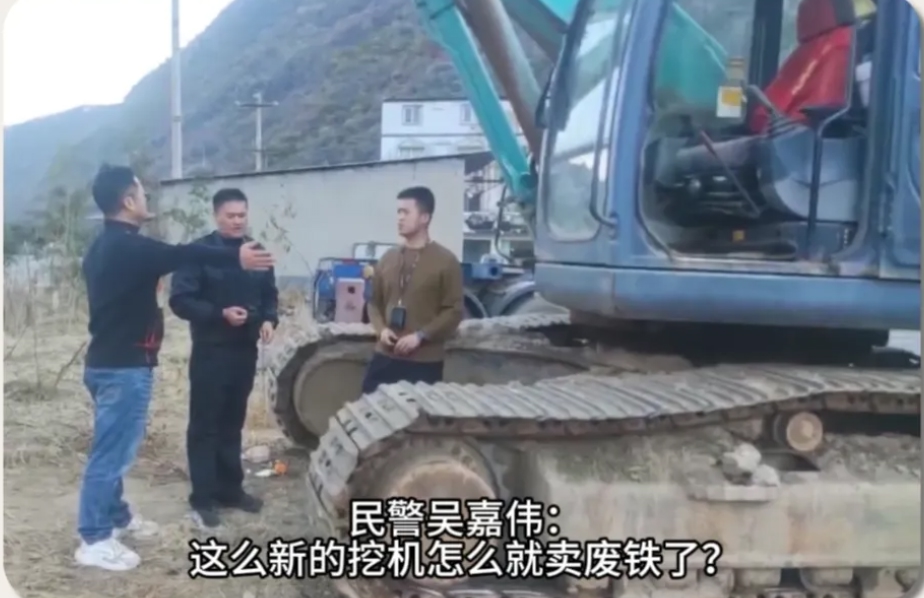 当日,民警吴嘉伟、李金芸在辖区开展常规调查走访工作,走进一家废品收购站时,一台即将被切割报废的挖掘机引起了二人的注意。这台挖掘机外观崭新,机身各部件完好无损,完全达不到报废标准,与“切割报废”的处置方式形成明显反差。“这么新的挖机怎么就卖废铁了?”民警的职业敏感瞬间拉满,当即对这一异常情况展开核查。