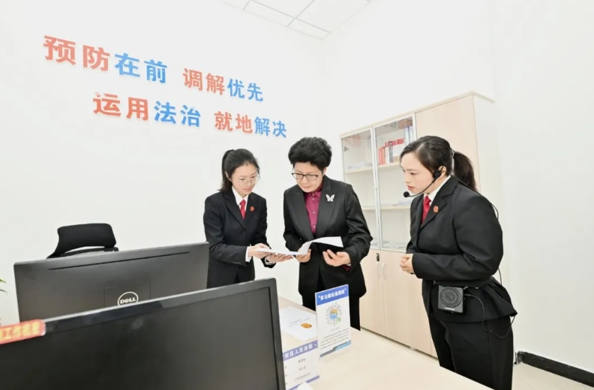次日一早,调研组来到广安市广安区综治中心,详细了解多元解纷工作情况。在中心诉调服务工作站,陈志君与驻点的退休三级法官杨芹、调解专家刘斌及派驻的年轻法官袁小钦就物业纠纷等类型化矛盾化解进行现场探讨。“物业纠纷就是典型的类型化纠纷,可以通过示范判决指导调解,带动类似案件当事人参照标准,自愿和解”,她强调,这正是最高法院推行的“示范性诉讼+批量化调解”机制的核心要义,旨在实现“办理一案、治理一片”的效果。陈志君要求,调解与诉讼的衔接须更加紧密,法官应提前介入、靠前指导,要善于运用最高人民法院案例库和已生效裁判文书,为调解员提供权威法律支撑,增强调解说服力,努力实现“调解优先、诉讼断后、案结事了、政通人和”。