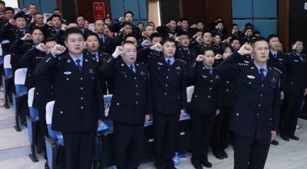 法治班主任代表、辖区两所中小学校副校长代表先后作表态发言,表达了履职尽责、守护校园平安的坚定决心。学生代表围绕“法治班主任”主题进行朗诵,以真挚的情感传递家校警协同育人的共同愿景。全体法治班主任面向国旗庄严宣誓,铿锵有力的誓言响彻现场,彰显了民警们坚守法治初心、全力守护校园安全的责任担当。