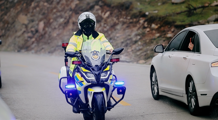 在毕棚沟路的一处观景台,记者遇到了正在巡逻的“枫警骑警队”。这支由精干警力组成的队伍,实行“定点值守+动态巡逻+快速快反+联动共治”模式——重点路段定点守、全线流动巡、突发情况马上到、多部门联动处,有效破解了山区路窄、弯多、应急慢的难题。