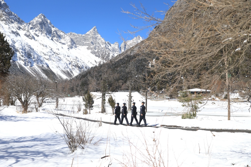 在海拔较高的毕棚沟景区,高原反应是游客常遇到的“拦路虎”。民警蒲伟豪在巡逻时,发现售票处一位游客脸色苍白、蹲在地上。他立即上前询问,迅速判断出是高反症状,二话不说将其搀扶至景区医务室,直到游客转危为安。