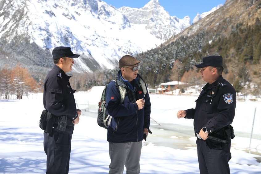采访结束时,记者在毕棚沟景区门口遇到了来自西安的游客张先生一家。他指着远处正在执勤的民警对记者说:“你看,他们站在那里,我们就觉得特别安心。”