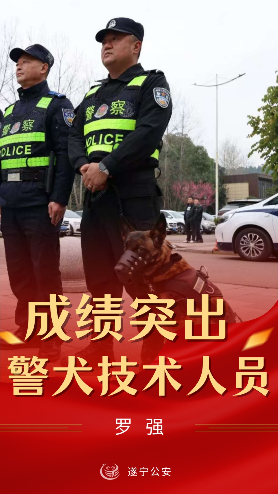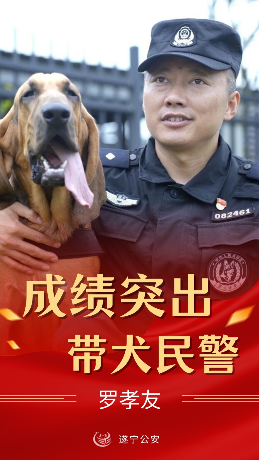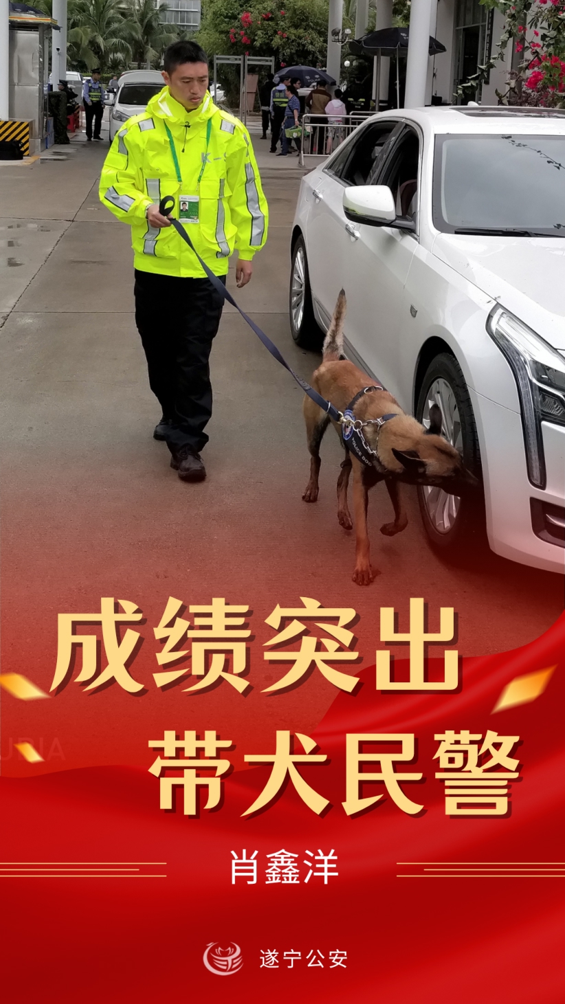 遂宁市公安局刑侦支队肖鑫洋、安居分局罗孝友、蓬溪县局范峰被评为“成绩突出带犬民警”