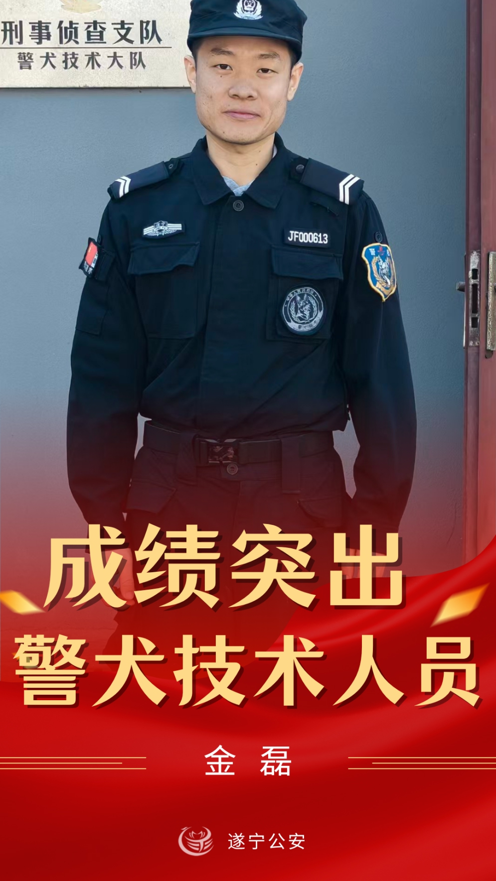 遂宁市局刑侦支队廖文龙被评为“警犬工作成绩突出辅警”