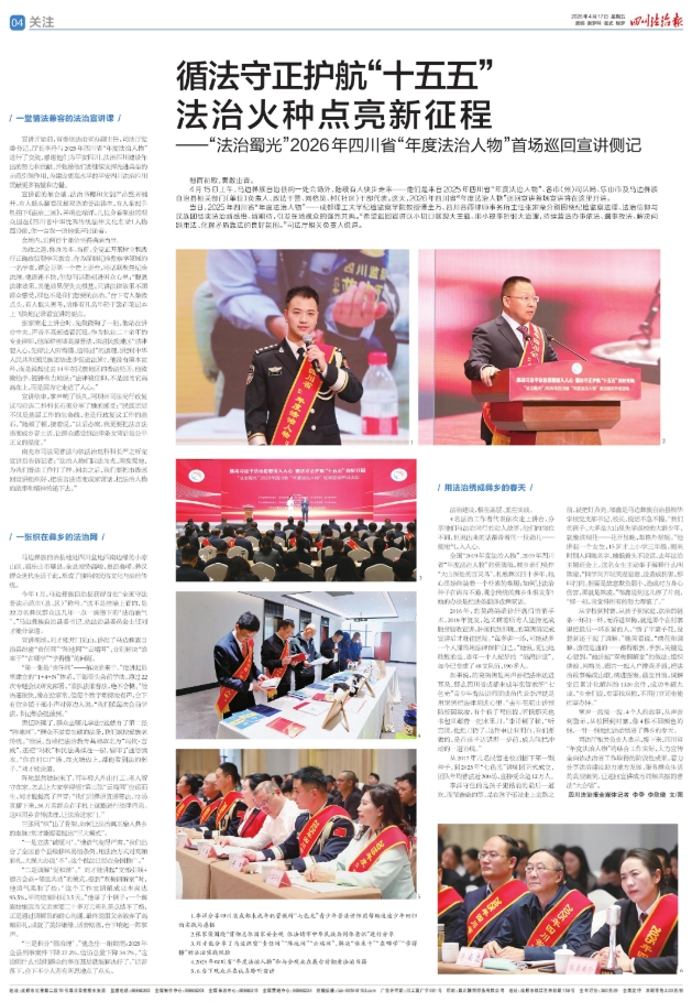 司法厅相关负责人表示,接下来,四川省“年度法治人物”将结合工作实际,大力宣传全面依法治省工作取得的阶段性成果,着力分享法治建设助力地方发展、服务群众生活的典型案例,让巡回宣讲成为同频共振的普法“大合唱”。