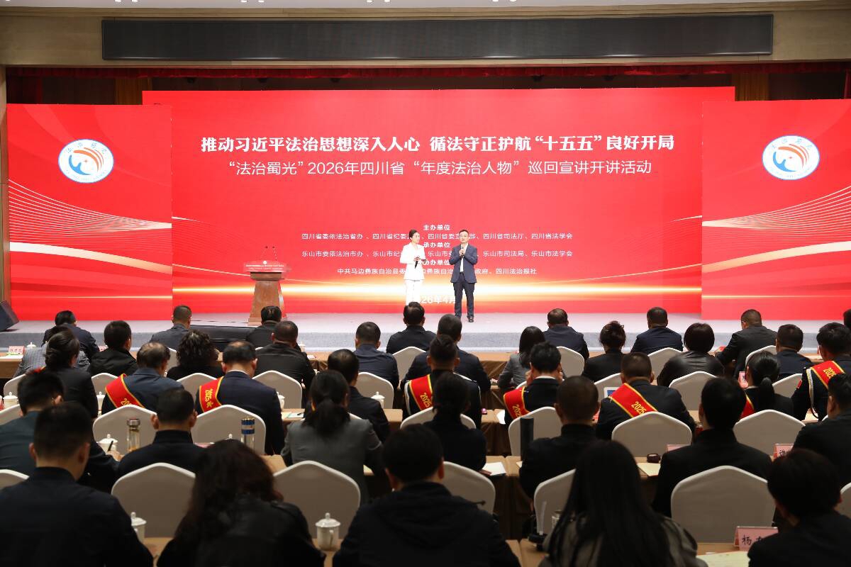 4月15日上午,马边彝族自治县的一处会场外,陆续有人快步走来——他们是来自2025年四川省“年度法治人物”、各市(州)司法局、乐山市及马边彝族自治县相关部门(单位)负责人、政法干警、网格员、村(社区)干部代表。这天,2026年四川省“年度法治人物”巡回宣讲首场宣讲将在这里开讲。