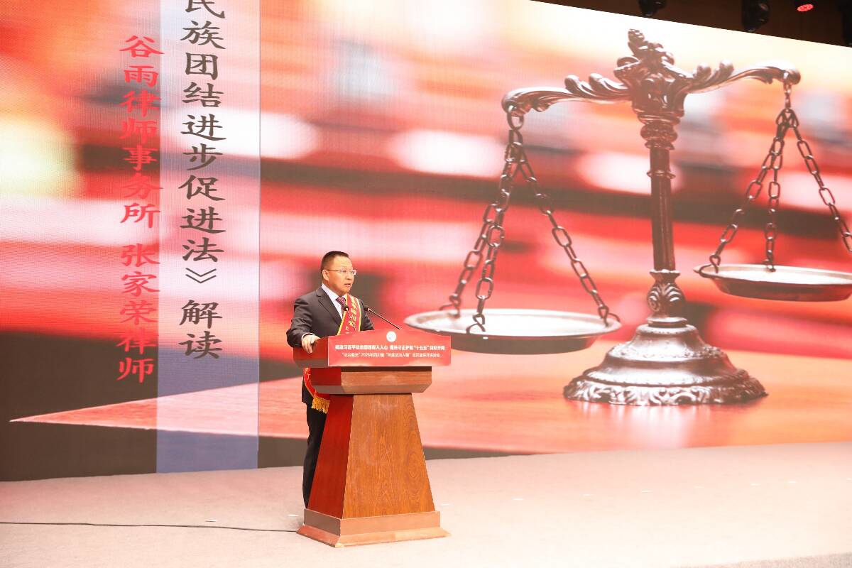 张家荣走上讲台时,先微微鞠了一躬。他站在讲台中央,声音不高却透着沉稳。作为执业二十余年的专业律师,他深耕雪域高原普法,深谙民族地区“法律要入心,先得让人听得懂、信得过”的道理。讲到《中华人民共和国民族团结进步促进法》时,他没有照本宣科,而是说起过去14年在民族地区的普法经历。他微微抬手,铿锵有力地说:“法律被信仰,不是因为它高高在上,而是因为它走进了人心。”
