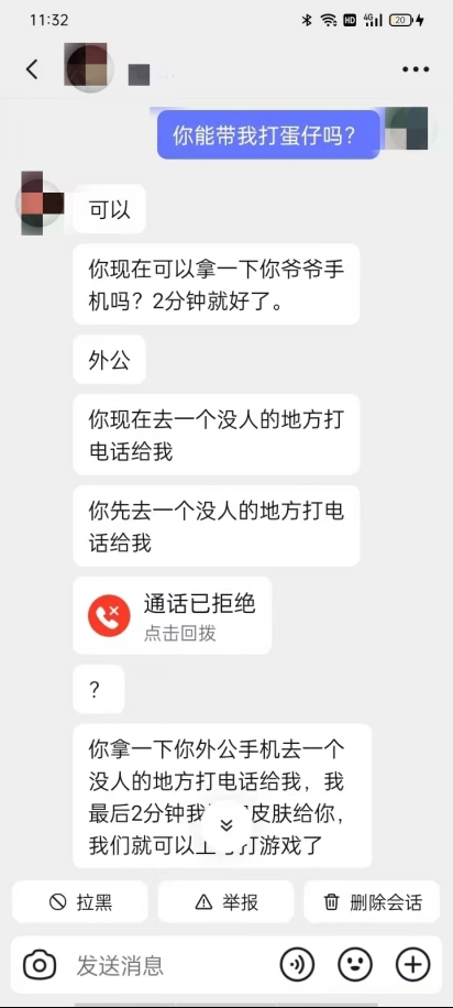 事情还要从今年1月份说起。2026年1月29日,隆昌一名7岁小男孩郑某在家游玩手机游戏“蛋仔派对”时,被一名陌生网友主动搭讪。对方以免费赠送稀有游戏皮肤为诱饵,一步步引诱孩子上钩。
