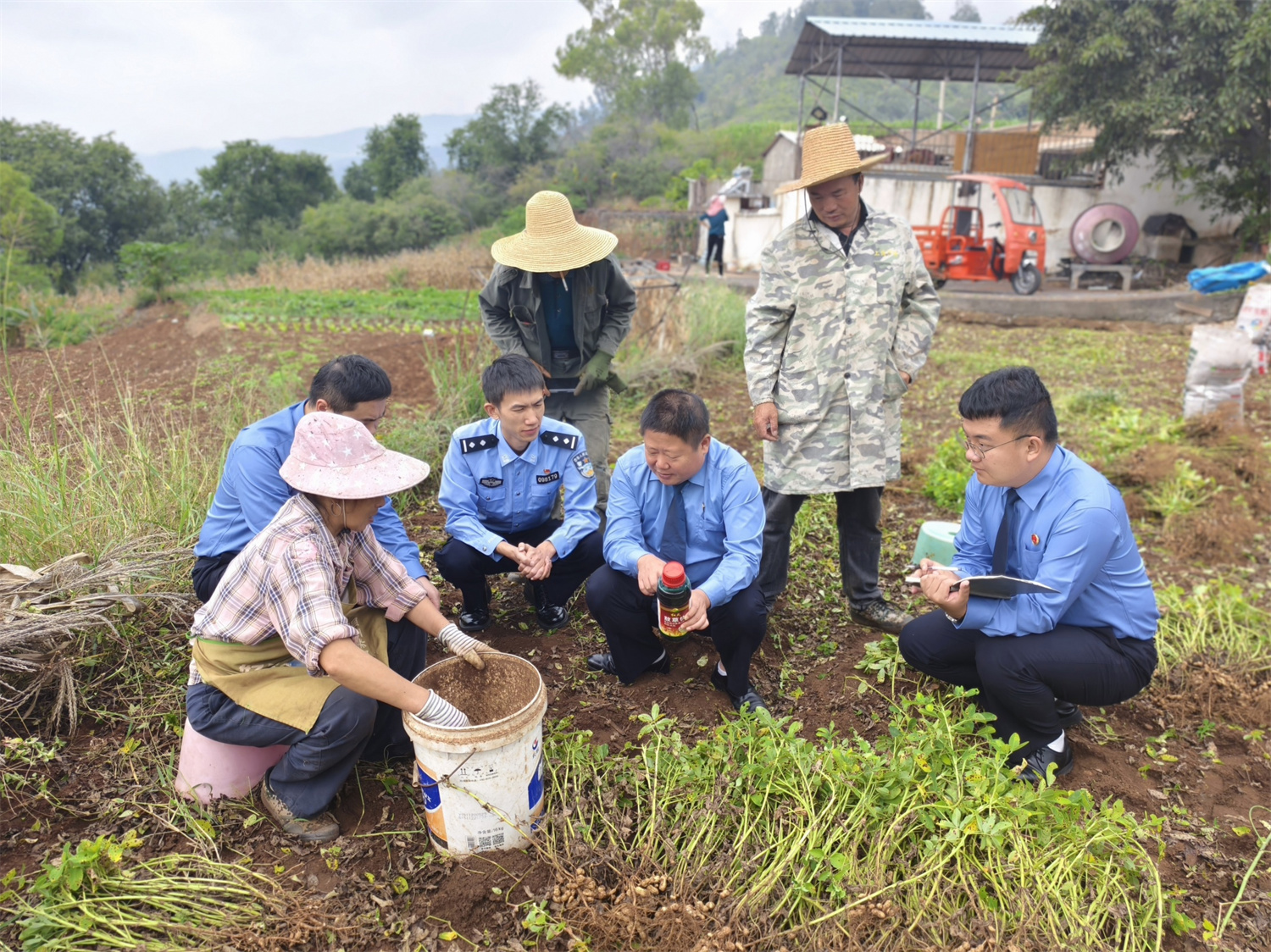 检察官深入购买使用假农药的农户田间进行实地调查