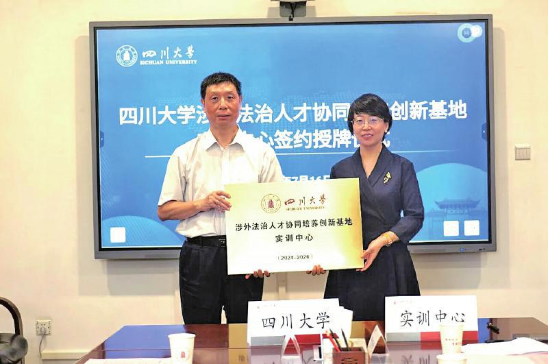 持续构建“平台筑基、校地协同、实战赋能”的三位一体培养体系。在省司法厅推动下,四川大学在6家律所设立“涉外法治人才协同培养创新基地实训中心”,加强案例教学和实习实训,提升涉外法治人才的实战能力。