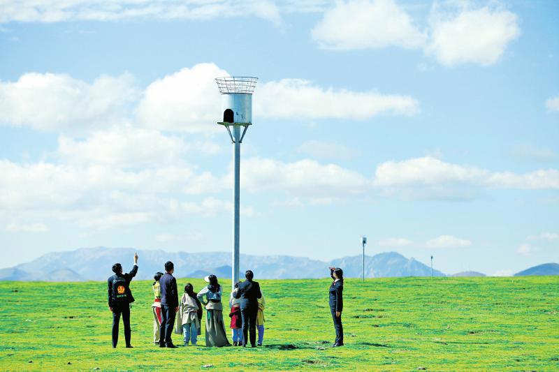 “为何是招鹰架?”面对疑问,四川若尔盖湿地国家级自然保护区管理局科研科科长索郎夺尔基给出了科学的解释:“苍鹰、雀鹰等猛禽,是控制鼠类的天然能手。一只雀鹰就能守护数百亩草场。非法猎捕导致猛禽减少,鼠害滋生,草原生态失衡。修建招鹰架,就是为猛禽提供栖息之所,吸引它们‘安家落户’,重新建立‘草-鼠-鹰’的健康生态链。”
